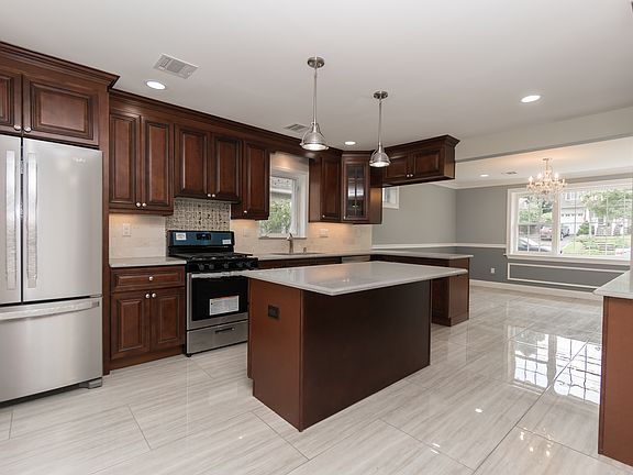 A fully renovated luxurious custom colonial home in the North Springs Garden section of Nutley, NJ, offering 4 large bedrooms, 3 bathrooms, kitchen, center island, breakfast bar, dining room, breakfast/sun room, living room, family room, laundry room, new plumbing and new electrical and 3,600 square feet. Beautiful Brazilian Cherry hardwood floors on second floor and living room. The spacious kitchen complete with gorgeous Cherry cabinetry, under cabinet lighting, recessed lighting, quartz countertop, limestone & recycled concrete glass backsplash, new SS appliances, island and breakfast bar. Crown molding throughout the home. The living room has a fireplace and the family room has a cozy wood burning stove. Custom tiled in Bathroom. Tankless water heater. Heated Bathroom Floor. Recessed LED lights throughout the home, LED lighted ceiling fans. 2 zone - Central Heating & Air Conditioning, Security Alarm system, Cat-6 network cables, phone line and coax cables in each room. The family room has speaker cables wired. Two sliding glass doors lead to the beautiful large back yard. Backyard: In-ground pool/pool house, Fenced on all sides, Outdoor Grill Ready, Open and Covered Patio, Paver Patio, New Chimney Liner's, New over-sized windows, All doors are solid, Close to NYC Transportation and Shopping. Do nothing but unpack! Landscaped. VISIT my site to see floor plans and a video walk-through: 20overlookter.com, Come see this gorgeous house. Call to make an appointment. For Sale By Owner.