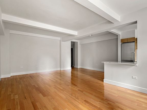 This spacious and classically renovated studio features beamed ceilings and hardwood floors throughout. The generous layout includes a separate dressing area, an open kitchen with a breakfast bar and excellent closet space. The Southern exposure allows for bright sunshine all day long.