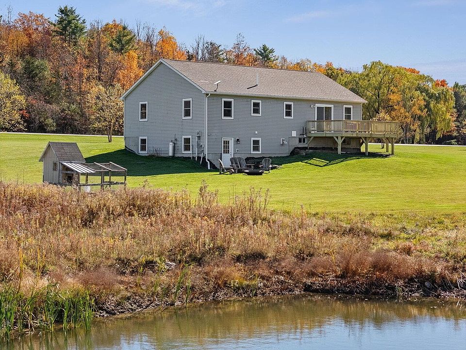 Tranquil pondSweeping adirondack mountain viewsSoaring cathedral ceilingsOak hardwood floorsNewly expanded deckVersatile living spaceFinished walkout basement