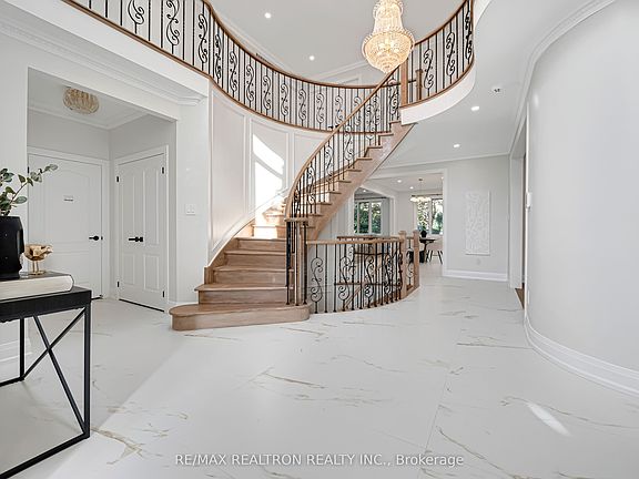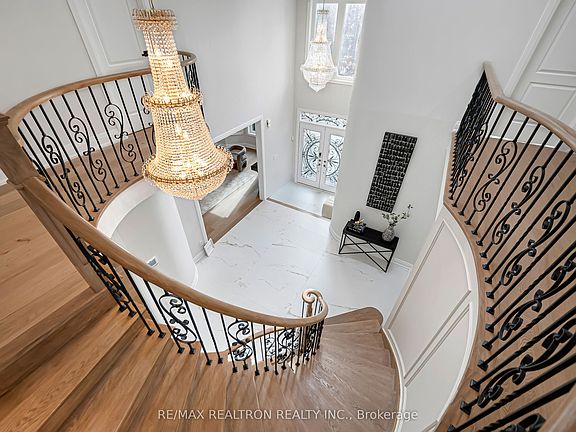 Step into this stunning, fully renovated 3-car garage home in the prestigious Bayview & 16th neighborhood, offering 6,000+ sq. ft. of modern, freshly updated living space. A bright 18-ft skylit foyer and soaring ceilings create a welcoming, open atmosphere. 1 year warranty for Appliances and HVAC systems. The gourmet kitchen boasts brand-new Miele & Bosch appliances, granite countertops, and a spacious island, perfect for entertaining or everyday living. The home features 4 ensuite bedrooms plus 1 semi-ensuite, a main floor office, and a contemporary laundry room.The finished basement includes two bedrooms, a full kitchen, bar, bathroom, and recreation areaideal as an in-law suite or rental.Enjoy a professionally landscaped, pie-shaped lot with an interlock driveway and a private backyard retreat, offering a serene space for relaxation or entertaining. Located close to Hwy 7/407, transit, shopping, and top York Region schools including St. Robert CHS, this home combines the fresh feel of a newly renovated estate with luxury, comfort, and privacy.
