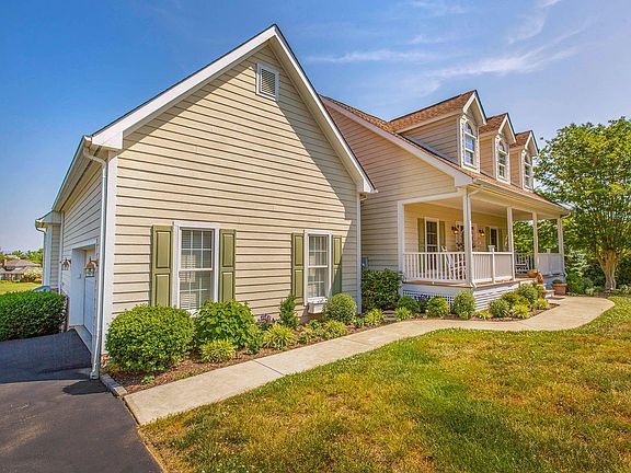This home would work perfectly for a multi-generational family. You must get inside this southern-style cape to appreciate all this golf course home has to offer. A large, covered front porch welcomes you into an open-concept floor plan. The great room opens onto a large, covered deck overlooking No. 10 tee and No. 15 green at The Waterfront Country Club (membership available!). You'll also enjoy a view of the Peaks of Otter mountains in the distance. The entry level features one-floor living with a kitchen, pantry, dining room, great room, master suite, laundry and two guest bedrooms. The flooring is a mixture of hardwood, carpet and tile. The lower level has low-maintenance LVP flooring and offers a generous guest suite, family room with gas fireplace and a lovely bar for entertaining.