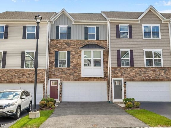 This stunning Schubert model townhome offers the perfect blend of luxury, space, and low-maintenance living in the highly sought-after Mountain Ridge community in Mt. Olive. Ideally located near award-winning schools, scenic walking trails, a fully equipped fitness center, and with easy access to Route 80 for commuters, this home checks every box. The main level features an open-concept layout with beautiful luxury vinyl plank flooring, recessed lighting, and a spacious living and dining areas that flow seamlessly into a gourmet Kitchen. The kitchen is a chef's dream, boasting granite countertops, upgraded cabinetry, pantry, tile backsplash and stainless-steel appliances. From living room, you have access to an oversized Trex deck overlooking a picturesque, wooded landscape complete the main floor. Upstairs, the luxurious Primary Suite offers a large walk-in closet and an elegant En-Suite Bath with a jetted soaking tub, stall shower, and double vanity. Two additional generously sized bedrooms, a full hall bath, and a convenient second-floor laundry. The finished walk-out basement offers even more living space with a large entertaining room, a full bath, and a dedicated storage room. Recessed and upgraded lighting fixtures.
