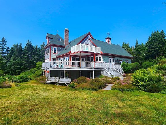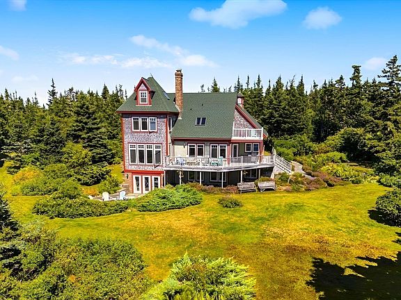 This timeless custom designed retreat , sequestered within a matured natural landscape, offers south-west views to the bold, open Atlantic. This enclave has been a cherished property with its tree-lined paths that gently enraptures your heart as it has its sole owners since its creation. Entering the main foyer one's eyes are drawn to the garden and sea views through an expanse of windows. A generous dining-room and kitchen space are grounded by a natural-stone, double fireplace lending warmth at this home's heart. The sunken living-room has an elevated sitting area to one side and in conjunction with the open kitchen-dining make this property ideal for family receptions. A mudroom laundry space and pantry off the kitchen reach to an attached double garage. A broad, open staircase provides access to the primary bedroom suite - encompassing an entire floor. This suite has large panoramic windows framed beneath a window seat and also features a gas fireplace. The tower loft, with an abundance of natural light, serves as an inviting studio or library. The large principle ensuite contains a walk in closet, soaker tub and separate tile shower and from the principle suite, a private deck would surely call for morning coffee. At the lower level, a large family room with wood stove offers full walkout to a custom-designed, brick patio. At this same level, two large bedrooms are complimented by two full baths. A utility room that completes this level. A charming, large, three bedroom guest house, tucked away off the main driveway is framed by forest. An open-concept living-dining space off the kitchen with a gas fireplace makes for the ideal retreat for visiting family. The primary bedroom with ensuite and laundry room complete this main floor. Two additional bedrooms with baths perfectly compliment this guest retreat. Though constructed in our century, this property and its stunning setting conveys the sentiments of another time. A rare opportunity.