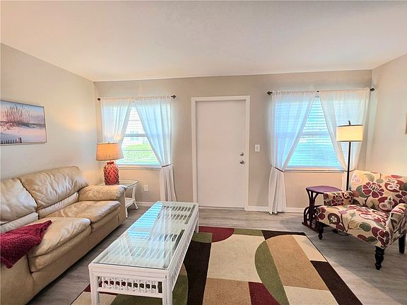 Bright, Clean and Move-In Ready! This beauty is well-maintained featuring a newly remodeled bathroom, brand new AC in 2024, stylish vinyl flooring, and a fresh white kitchen that opens to the living areas. Impact windows in the front for peace of mind and a new front door as well! Light and welcoming, freshly painted and waiting for your personal touch! Furnished unit with all assessments paid. Vista Royale has four clubhouses, swimming pools, tennis, fitness, shuffleboard and gazebos for gathering. Public Golf Course and associated restaurant on site!
