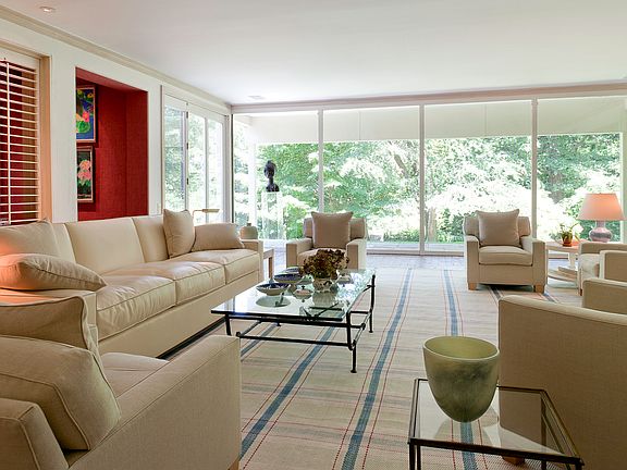 Completely secluded yet convenient to highways and train, this magnificent 4-acre estate is the ideal get-away-from-it all country retreat. Dramatic entertaining rooms feature floor to ceiling picture windows and sliding doors looking over the gorgeous property. The interior blends seamlessly with the beautiful natural surroundings so you can savor the tranquility or throw a sensational party. Renovations and a breathtaking 1,570 sq ft master suite were designed by internationally renowned modernist architect Paul Rudolph. The master is a luxuriously appointed light-filled aerie--private, serene, and inspiring. The first floor includes a magical sunroom, cabana suite with changing room and sauna, and an amazing temperature controlled 3,000-bottle wine room. The property includes a free form heated pool, tennis court, rolling lawns, stone terraces, and lush plantings. Truly remarkable ... you'll never want to leave!