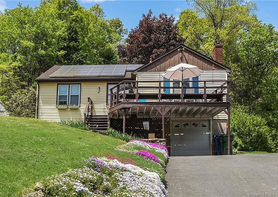 Welcome to this 3 bedroom, 1.5 bathroom, ranch home in a quiet, scenic Marlborough neighborhood, ready for is new owners. Set on over an acre of land, this home is centrally located but also secluded! Sit out on the freshly painted front deck and listen to the relaxing sounds of nature with a beautiful water view of the pond or go out back and enjoy your own private backyard oasis with over an acre of land to explore with beautiful flowering trees and garden spaces. Inside you'll find a spacious living room with large windows bringing in bright natural light, a stone mason fireplace, eat in kitchen with breakfast bar as well as additional square footage on the lower level with a partially finished basement including a half bath and attached 1 car garage. Many upgrades to the property have been completed including newer septic system, plumbing work, and new lower-level half bath in this smoke free home. You can't beat the location with both privacy and convenience - set just a few minutes from grocery stores, restaurants, and Marlborough's Blish Park with town beach at Lake Terramuggus, tennis courts and playscape - with easy highway access for commuters.
