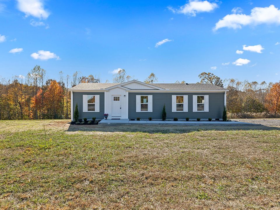 Situated on 1.28 acres in a tranquil country setting, this new three-bedroom, 2-bath home features an open floor plan, highlighted by a living room with a fireplace and beamed ceilings. The split bedroom plan includes a spacious primary suite complete with a beautifully appointed tiled walk-in shower, dual sinks, lots of vanity cabinetry space and a walk-in closet. A large back deck provides a seamless transition to the backyard, leading to the creek. Additional features include a walk-in laundry room with storage cabinetry and shelving, as well as a stylish island kitchen filled with natural light courtesy of the large windows and modern stainless-steel appliances. Located just 20 minutes from shopping, Walmart and town this residence boasts premium insulated windows, an energy-efficient HVAC unit, newly landscaped grounds and fiber internet available. Call today to view this move in ready home!