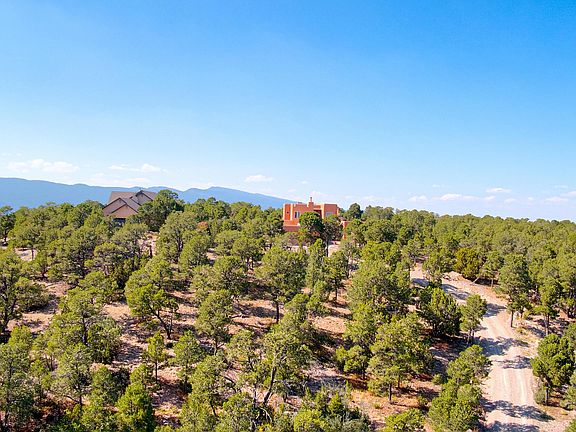 Luxury Mountain Living just 20 minutes from the city in the Coveted Rancho Verde subdivision! This densely forested lot smells of sweet pinon trees! Quality construction with flagstones walkway. The home greets you with warmth and a grand, curved staircase with designer mosaic. Open chef's kitchen with island, pantry, custom cabinets, granite slab countertops and stainless steel appliances. Spacious semi-formal dining space! Generous Great room with tongue and groove ceilings with vigas, classic kiva style fireplace and back patio access. Energy saving pellet stove. Conveniently located downstairs is the Primary Suite with its own upscale bath featuring dual vanities, oversized garden tub, separate glass block shower and gracious walk-in closet! Upstairs boasts 2 secondary bedrooms with