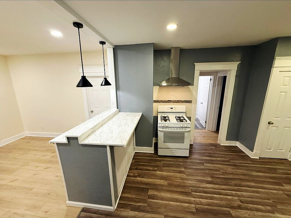 NEW renovated 2 bedroom apt. on first floor of quiet building. New appliances, LED lights,ceiling fans, wood floors. Backyard parking & security cameras. Walk to bus at corner and minutes to major highways. Property Manager weekly on site! Tenant pays for electric. Landlord pays for gas, heat, hot water & trash disposal. No pets or smoking.