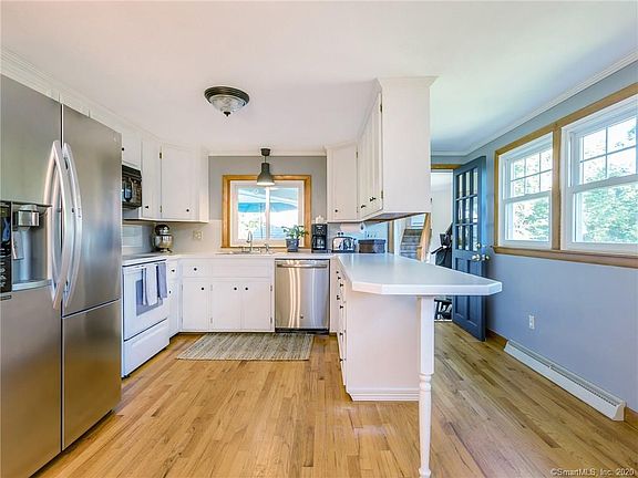 PRICE REDUCED! CALL REBECCA DUCEY 860-601-4406 OR JENNY LAMESA 860-307-4194 FOR A SHOWING! Charming, well maintained cape located on 1.7+/- serene acres in a quiet neighborhood. Enjoy this peaceful backyard from the three season sun porch or the sizable deck where you can view the fruit trees and listen to the babbling brook. Brand New windows throughout! 4 spacious bedrooms, 2 full baths, living room w/ fieldstone fireplace, and hardwood floors throughout are only some features that this home boasts of. A breezeway from the attached two car garage conveniently accesses the updated kitchen, rear deck AND bonus room above the garage with separate entrance! Think man-cave, playroom, media space or yoga room! Possibilities are endless! Great commuter location, just a few minutes from Rte 8 but a world away!
