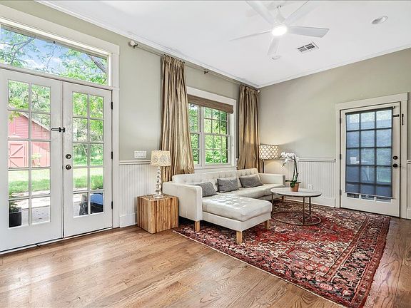 A hidden gem in the middle of bustling Austin. This home blends modern design with upscale farmhouse charm, featuring high ceilings, open floorpan, expansive windows and peaceful outdoor spaces. Room for expansion or add a guest house.* Large outdoor barn. Chicken coop included. Walking distance to Austin Montessori School. Please verify with City of Sunset Valley for ADU city codes and ordinances.
