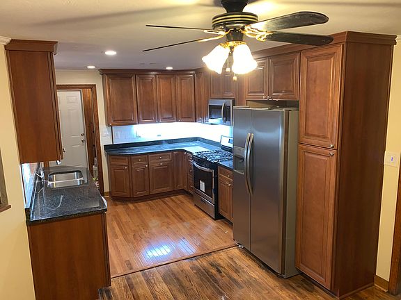 Kitchen has full set of Maple cabinets and new appliances. Solid oak hardwood floors throughout 1st and 2nd floor. 1st floor has bath with fiberglass tub/shower setup.