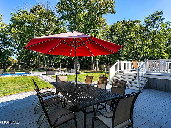 Shangra- La! Come check out this backyard! Trex deck off kitchen overlooking stunning inground pool with 3 year old liner and stunning entertainment patios and deep fenced in property. On the interior you will find a well appointed, updated and spacious floor plan featuring hardwood floors, beautiful moldings, large basement, good sized bedrooms and a 5 year young heating and cooling systems! Middletown is a great spot for the commuter with proximity to ferry, train, and major highways. Monmouth County offers an incredible park system plus golf courses and fantastic restaurants and shopping.