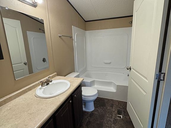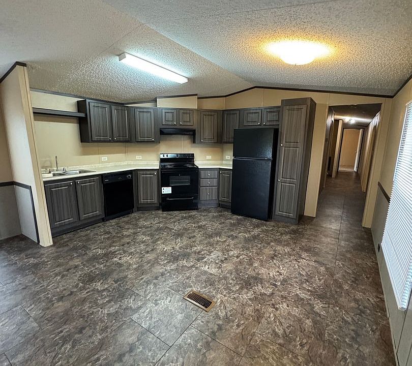 Single wide mobile home with 3 bedrooms and 2 baths. Features include: open concept living room and kitchen with electric range, fridge, and dishwasher, small covered porch, central heat/air, and laundry nook for small, stackable washer/dryer. No pets. No Section 8. Water and Lawn Care provided.