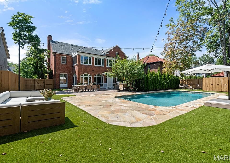 SHOW TODAY!!!!! Discover the stunning updates in this remarkable 5-bedroom, 3 full bath, 2 half bath home ideally located in Claverach Park, one of Clayton’s most treasured neighborhoods! With over 4,700 square feet across three spacious levels, this residence offers a seamless blend of classic sophistication and edge of contemporary comfort. The main floor features a chef’s kitchen with a butler’s pantry, a freshly updated dining room and living room with lit up bookshelves and gas fireplace. A light-filled sunroom overlooking the patio and pool. The second floor elegant primary en suite features a generous walk-in closet and a full-size private office. 2 additional bedrooms on the second floor including a full bath. Two more bedrooms on the third with a Jack and Jill full bath, provide exceptional comfort & flexibility making this an ideal home. Outside, unwind in your personal oasis, a beautifully landscaped yard with a gorgeous in-ground pool, built in grill, elegant new lighting, and negotiable Restoration Hardware outdoor furniture. An entertainer’s dream! Second floor closet has a small stackable washer & dryer & additional washer & dryer in basement. Lower level is finished w/newer carpet half bath & Gas Fireplace. Direct access to the attached tuck under 2 car garage. The bathrooms are ready for your personal design touch to create a space that perfectly suits your style. Truly a gem, unmatched in both charm & location! A true retreat in an unbeatable location just minutes from all the best of Clayton restaurants, shops & Clayton seasonal events. WALKABILITY-LOCATION- LOCATION -LOCATION! Experience luxury living at its finest. Newer Roof and HVAC 2023.