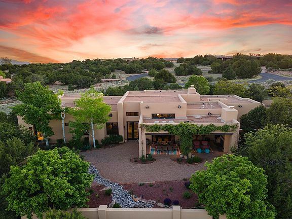 Nestled on nearly two secluded acres in prestigious Las Campanas, this extraordinary, custom interior designer's residence offers an unparalleled connection to Santa Fe's natural splendor. Wake to the majestic Sangre de Cristo mountains, painting an ever-changing canvas outside your window—snow-capped peaks in winter, golden sunset light at dusk, and songbirds as your daily companions. This isn't just a home; it's a masterpiece where every custom detail tells a story. The architecture is by acclaimed architect David Lorimer, and the interiors and furnishings are by award-winning ASID interior designer Jeannie Brown. From century-old reclaimed beams, antique Mexican doors to hand-hewn oak floors, each element was personally selected and designed. The result? A living work of art that only a designer's own sanctuary can achieve.