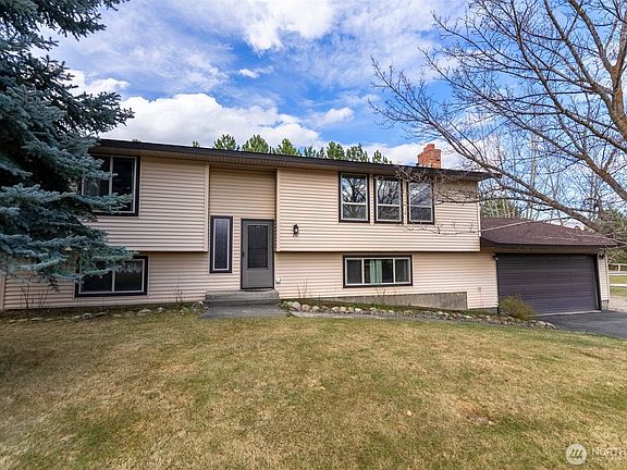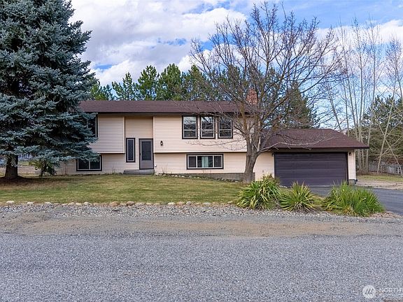 Immaculate split level view home in one of Omak's most desirable quiet neighborhoods. Curb appeal galore--mature landscaped yard and potential for gardening and planting expansion on the 1.2 acre irrigated lot on uninterruptible water. Attached 2 car garage. Welcoming living room with panoramic windows and cozy pellet stove. Kitchen has recently been redone. Large composite deck off the dining area is perfect for enjoying the peaceful, private back yard. Bedrooms are bright and spacious with expansive storage. Master ensuite has been beautifully updated. Main bath boasts tiled deep tub. Massive lower family room has set up for wood or pellet stove. Lower bedroom spaces are very bright and open. So many possibilities for this lovely home!