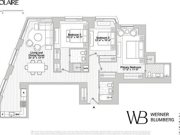 Residence 22G is a renovated 1,628 sq. ft. northeast facing corner three bed three bath home. The unit features both Hudson River and city views through floor-to-ceiling windows and has extra storage in the form of closet build outs and custom cabinetry in the bedrooms. Interiors have been designed by the acclaimed, environmentally focused architecture firm COOKFOX, and feature 4" wide plank white oak flooring in a custom satin finish, and custom Italian kitchens with matte-lacquered millwork. Beautiful and durable Quartzite slab countertops frame fully integrated Sub-Zero and Cove appliances, a Wolf range, and stainless steel Julien sink with a polished nickel faucet. Bedrooms experience an abundance of natural lights and direct views of Teardrop park. Bathrooms feature Montpellier Limestone floors and Bianco Dolomite marble walls, counters and tub skirting. Additional residence conveniences include a Miele washer and dryer, oversized noise reducing casement style windows with a "low-e" coating, and a four-pipe heating and cooling system that allows for maximum comfort and year-round flexibility.