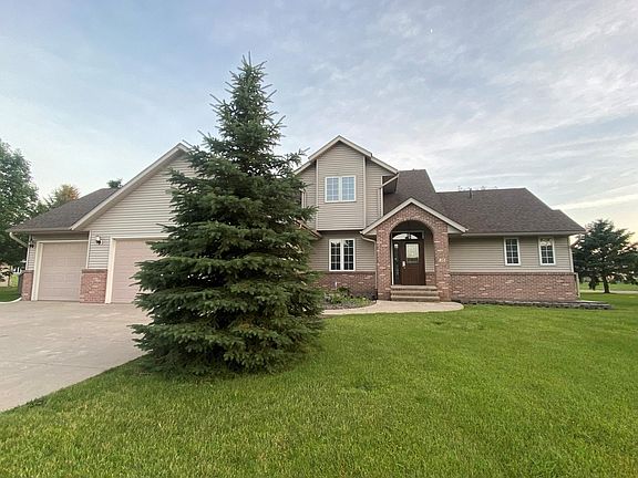 Stunning brick front home with 3 stall garage in the Riverside neighborhood. Large main floor features cathedral ceilings in the living room, gas fireplace is surrounded by windows for natural light. The owners suite has a large bathroom and walk-in closet. The office area is just off the kitchen/dining area, glass french doors lead to the sun porch. Guest half bath and a laundry room complete the first floor. Spacious bedrooms upstair, each with window seats, a full bathroom serves this space. As you make your way to the lower level you will find storage galore, bedroom, and bathroom. The 5th bedroom was added and can be opened up for for an even more spacious family room. The shingles are new, lighting and interior paint throughout is updated, new flooring and more! Corner lot provides a big yard complete with an outdoor patio area and children's play house. This neighborhood has a playground area out the back door and a short distance to the Pomme de Terre Park.