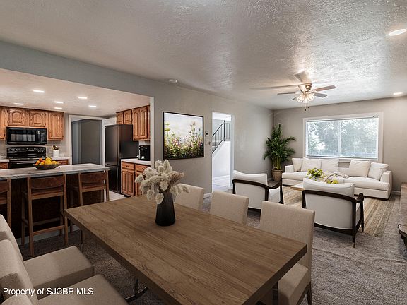 QUIET IRRIGATED COUNTRY LIVING IN FLORA VISTA THIS 5 BEDROOM 3 BATH HOME WITH THE POTENTIAL OF 6 BEDROOMS AND OR HOME GYM, SEWING ROOM OR WHATEVER SUITS YOUR NEEDS. WITHIN MINUTES TO SHOPPING, GREAT HORSE PROPERTY WITH IRRIGATION, FENCED PASTURE. THIS 3884 SQ. FT.HOME UPGRADES INCLUDE, NEW PAINT, NEW CARPET, CEILING FANS, COUNTERTOPS NEW RANGE AND SO MUCH MORE. THE DOUBLESIDED FIREPLACE WITH TWO LIVING AREAS, COVERED DECK, NEWER 50 GAL. WATER HEATER, 1 FULL BATH & 2 3/4 BATHS, SOME NEWER DOUBLE PANED WINDOWS AND SO MUCH MORE- TWO AIR CONDITIONERS. TWO HEATERS,SOLAR PANELS THAT HEAT THE LARGEST LIVING AREA FAMILY ROOM . OVERSIZED 2 CAR ATTACHED GARAGE WITH ADDITIONAL WORKROOM OR STORAGE AREA.PLENTY OF ROOM FOR ADDITIONAL PARKING AND RV. AND TOYS GREAT HORSE PROPERTY LOCATED IN A QUIET WELL-ESTABLISHED AREA. Images have been digitally staged to showcase the potential of the property. These images are intended for visualization purposes only and may not accurately represent the scale, functionality, or size of the rooms.