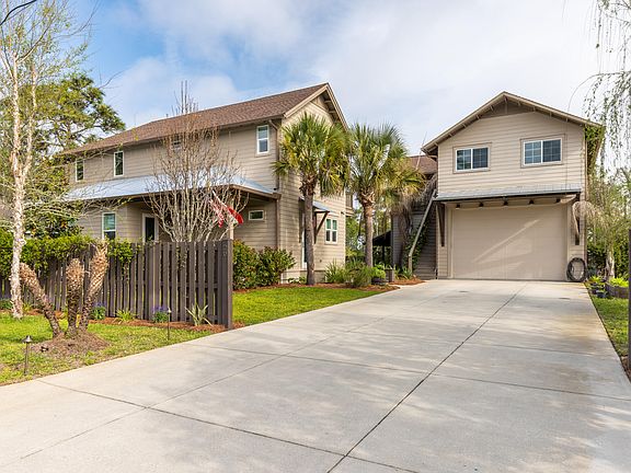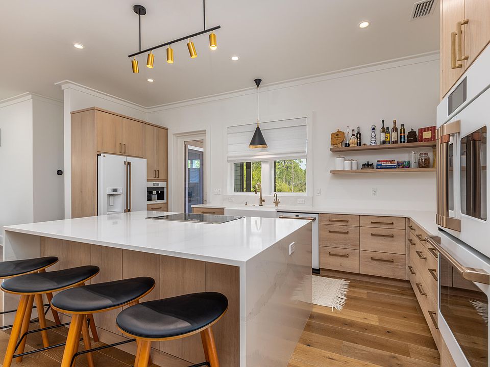 Elegant & Glamorous Custom-Built Home with Carriage House! Real potential for future STR income! All short distance to White Sandy Beaches of Florida's Emerald Gulf Coast & close proximity to Choctawhatchee Bay!Altogether there are 5 bedrooms, 4.5 baths amongst the, huge garage and plenty of parking! Enough room for your boat this heated/cooled garage. No HOA & No restrictions.Stunning Main house is 2,677 sqft, 3 bedroom, 3.5 bath, built 2021 and Guest house is 800 sqft, 2 bedrooms, 1 bath, built 2016. The extremely well-thought-out floor plan of the main home with such special attention to every detail will make you want to experience this property as Home Sweet Home!! As you walk up to this gorgeous home, you are greeted with a beautifully landscaped yard and quaint front porch. Venturing inside walks you straight into a glamorous home with its golden, crisp, clean touches everywhere! As you tour the home, you will see the white oak engineered floors, hand-crafted built-in cabinets galore tucked away throughout the home. The kitchen has floating shelves, and a large sit-in island with quartz waterfall countertops. Farm style sink, and very classy appliances. For convenience the custom-built laundry sits off the kitchen and unique cabinetry with mini-bar are inset under the stairwell.