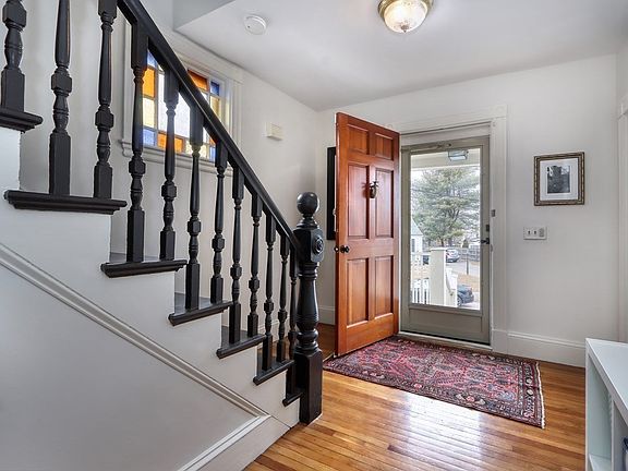 This charming five bedroom, three bath colonial has been nicely updated and is well located on quiet street yet close to shopping, highway and commuter rail. Inviting entry leads to an open concept floor plan that includes a well equipped spacious kitchen, sun filled dining room and living room with fireplace. Primary bedroom has an en suite and great storage. Two additional bedrooms and bathroom complete the second floor. The third floor offers bonus space that has been converted to an awesome family room, plus an additional bedroom and bathroom. The family room could also be a fifth bedroom. Lovely porch off the dining room and kitchen offers seamless entertaining and the fire pit is ideal for long summer nights. The backyard is fenced in and has easy access from the kitchen. Easy access to Legacy Place, Dedham Center, Boston, and walking distance to the train.