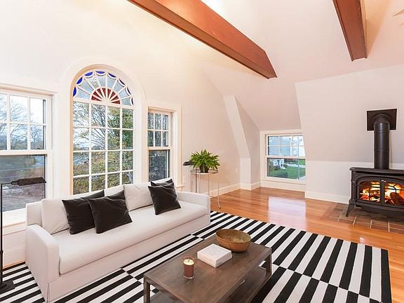 Architecturally stunning 2 bedroom condo located in the heart of Narragansett Pier, set in a grand shingle and stone summer cottage, recently converted to condominiums. This one of a kind condo offers vaulted beamed ceilings, hardwood floors, hardwood floors, 2 decks and ocean views. Located steps to the sea wall, restaurants and boutique shops!