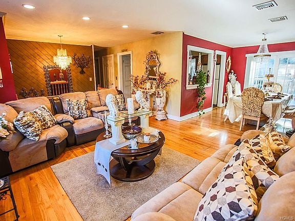 What a nice, well-maintained split level home in Scotchtown with Pine Bush Schools! Hardwood floors throughout, Brand new kitchen appliances and bathrooms, ceiling fans and central air conditioning. Designer crown moldings and doors. Andersen double hung windows and a huge bay window in living room. 2021 New Large patio slider opening to a 20' x 16' deck that is perfect for entertaining and overlooking your spacious, beautifully landscaped, level backyard. Finished lower level with wood stove expands your living space. 2021New Roof. Only 2 miles to NYC commuter train station, shopping and highways. Great house, great location, lower taxes. Come see it today!