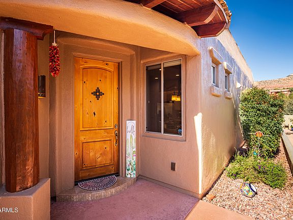 Highly sought-after, rarely available, The Villas at Firecliff's most prestigious location on Rose Mountain Court, which backs to tranquil Bell Wash offers truly breathtaking views of both Bell and Courthouse Rocks. This charming 4BR/3BH home is on one level, sits on a quiet cul-de-sac and has some of the finest views Firecliff has to offer. It even includes an attached casita with its own private entrance. At just under 2200SF, this lightly lived-in home is in superior condition with an open concept layout that is sure to have the entire family making memories filled with the magic of Sedona. The spacious kitchen with an abundance of both counter and storage space (walk-in pantry) will excite the chef in your family who wants to be a part of the sharing while creating culinary delights. The split floor plan allows quiet for your guests, while the primary suite provides a sanctuary to relax and recharge. Walk out your rear patio to the beauty of the lush open space of Bell Wash. Teeming with mature vegetation, privacy and wildlife, this unique dark sky setting also allows for magnificent stargazing. Nestled within the enchanting red rocks and mesas of the Village of Oak Creek, this home offers resort-style living with a community pool, close to hiking, biking, dining and shopping. It's time to make your Sedona dream a reality in the charming and serene enclave of Firecliff.