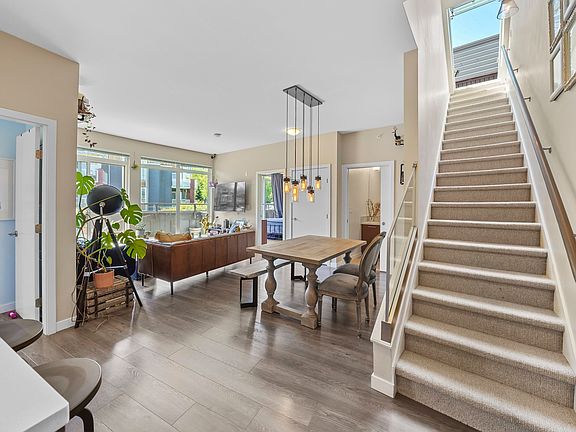 Open House Sat. Nov. 15, 2-4 PM. Something special awaits you in this beautiful Fraserview Neighbourhood on Victoria Hill. This spacious home with peaceful outlook offer 2 bedrooms (with maximum separation), 2 full bathrooms, 2 parking spots (with EV charging), beautiful kitchen, large balcony (with gas outlet) on main level, storage locker, and walk up your inside stairway to a stunning 775 sq ft private rooftop patio (with gas outlet), a panoramic outlook, your own hot tub and rooftop garden. The neighbourhood offers so much with parks, recreation, transportation, and a Market & Sushi restaurant just outside your door. Call your agent for a private viewing.