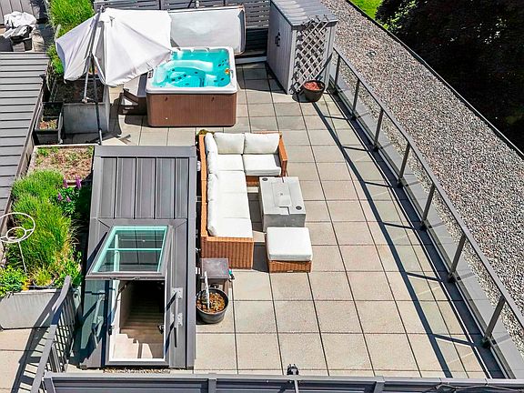 Something special awaits you in this beautiful Fraserview Neighbourhood on Victoria Hill. This spacious home with peaceful outlook offer 2 bedrooms (with maximum separation), 2 full bathrooms, 2 parking spots (with EV charging), beautiful kitchen, large balcony (with gas outlet) on main level, storage locker, and walk up your inside stairway to a stunning 775 sq ft private rooftop patio (with gas outlet), a panoramic outlook, your own hot tub and rooftop garden. The neighbourhood offers so much with parks, recreation, transportation, and a Market & Sushi restaurant just outside your door. Call your agent for a private viewing or join us this Sat. Oct. 4 at the open house from 1 to 3 PM.