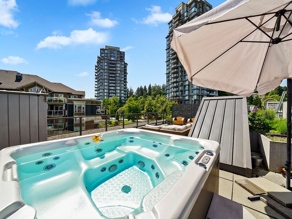 Spacious homePeaceful outlookBeautiful kitchenLarge balconyPanoramic outlookHot tubRooftop garden