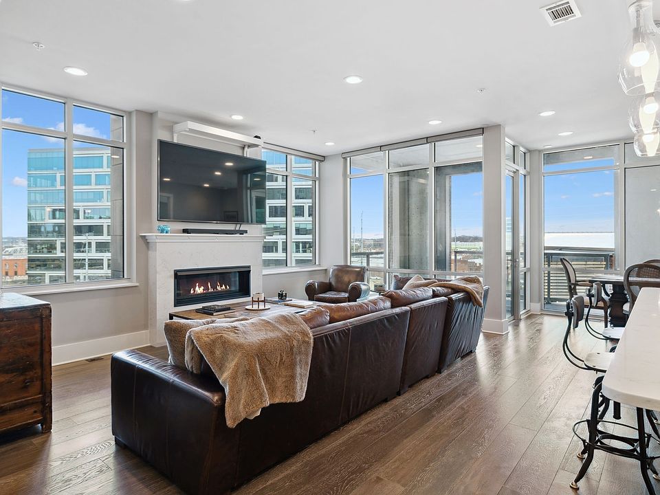 Private balconySophisticated living spaceOpen-concept layoutBreathtaking city viewsSleek modern kitchenSub-zero refrigeratorFloor-to-ceiling windows