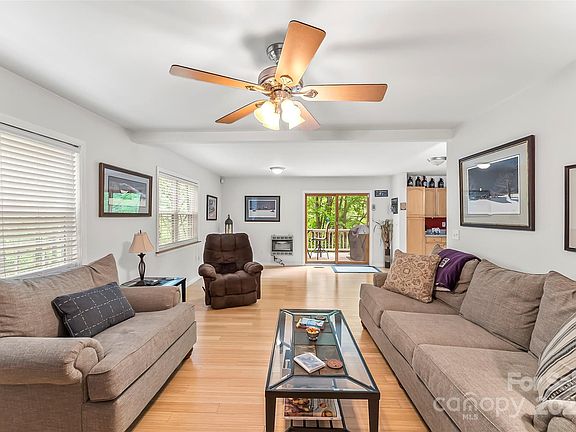Private mountain hideaway just minutes from Asheville! Surrounded by nature, this low-maintenance 3 bedroom / 3 full bathroom home offers an open floor plan and beautiful bamboo flooring. The kitchen is equipped with stainless steel appliances and ample storage. The basement features a large bonus space and a full bathroom. Enjoy entertaining guests inside or out with an open deck, screened-in porch and firepit outside on the level side yard. Conveniently located only minutes from the Blue Ridge Parkway, Black Mountain, local shops, and amenities. Don't miss out on the chance to experience the beauty of the mountains from this peaceful mountain retreat!