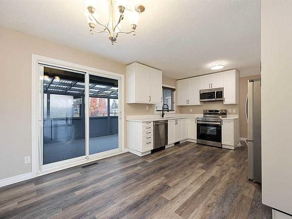 This beautifully renovated five-bedroom home is perfectly situated in a quiet cul-de-sac, backing onto peaceful green space. A true rare find, this property offers four spacious bedrooms on the main floor, providing plenty of room for family and guests. Designed for comfort and style, it also features two primary suites — one on the main level with a convenient two-piece ensuite, and another downstairs with a walk in closet and a full ensuite and its own washer and dryer hookups for added convenience. Downstairs also boasts a large den/storage room. All three bathrooms have been tastefully upgraded with a modern touch, giving the entire home a fresh, elegant feel. The stunning kitchen showcases brand-new cabinetry, quartz countertops, and stainless steel appliances, perfect for cooking and entertaining. The bright living room offers warmth and charm with its cozy fireplace, ideal for those cooler winter nights. The front entrance is truly unique, featuring a custom “penny” floor that adds character and personality from the moment you walk in. Downstairs, an amazing theatre room awaits — fully equipped and ready for your enjoyment, complete with a popcorn maker and candy tray for the ultimate movie-night experience. Outside, enjoy the screened-in deck and fully fenced yard, offering privacy and space to relax or entertain. The double detached garage adds even more value, featuring seasonal hot water on demand and a laundry sink and shelving. This home has been thoughtfully updated, combining modern convenience with comfortable, stylish living. Check it out TODAY