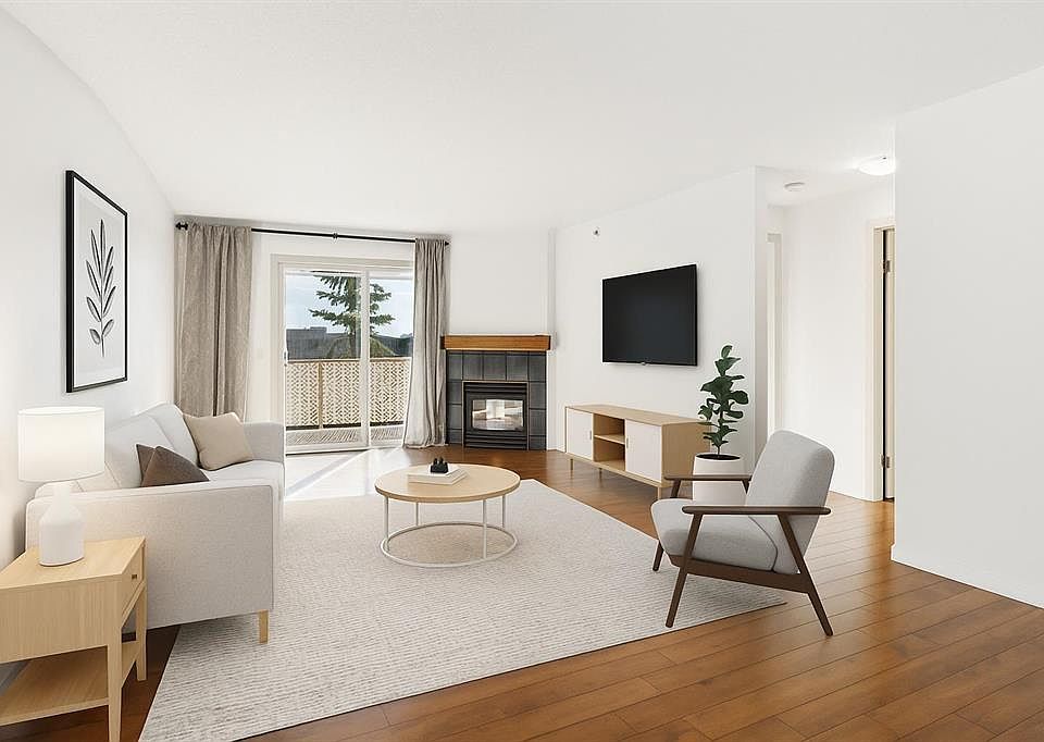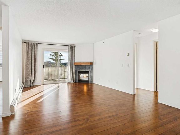 Airy top-floorBright open living spaceHardwood flooringWell-planned kitchenCorner gas fireplaceSunny south-facing balcony