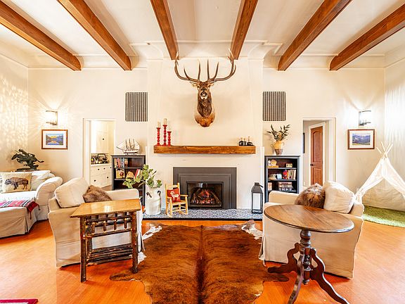 Once a grand ballroom, now a beautifully reimagined home—this unique property blends historic charm with modern updates just one block from Downtown Main Street. Renovated in 2017, it offers a spacious primary ensuite, two guest bedrooms, full bath, den, and an open and spacious living area with original hardwood floors and a gas fireplace. The gourmet kitchen features granite counters, and a serving area for added flexibility.