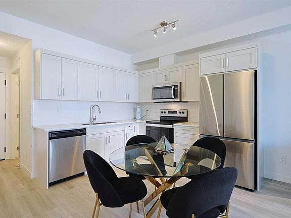 This is your chance to make your home in Logel Homes’ popular SAGE WALK project in this fantastic top floor condo just steps to the Sage Hill Crossing retail centre, winding ravine trails & bus stops. Available for quick possession, this terrific 2 bedroom / 1 bath home has high ceilings & vinyl plank floors, quartz countertops, covered balcony & titled underground parking for your exclusive use. Dynamite open concept floorplan featuring spacious living room with Northwest-facing balcony (complete with gas BBQ line), eat-in kitchen with quartz counters & soft-close cabinetry, Whirlpool stainless steel appliances & insuite laundry with stacking Samsung washer & dryer. Primary bedroom has a deep closet & Northwest-facing window. The 2nd bedroom easily doubles as a home office, & is across from the well-appointed full bathroom with tile floors & quartz counters. Your parking stall – with adjoining storage cage, has a prime location in the underground parkade…an end unit so just 1 neighbouring stall. Monthly maintenance fees in this pet-friendly (with board approval) complex include heat & water-sewer. The massive Sage Hill Crossing complex is walking distance from your front door…& features a Walmart Supercentre, TnT Supermarket, Dollarama, Bulk Barn, Value Village, Planet Fitness, bottle depot, restaurants, banks, medical clinics & so much more! With its quick access to major roadways (Shaganappi/Sarcee/Stoney/Deerfoot Trails, Symons Valley Parkway & Road), your new home is just minutes to regional parks & recreation, the airport, Cross Iron Mills, University of Calgary & downtown.