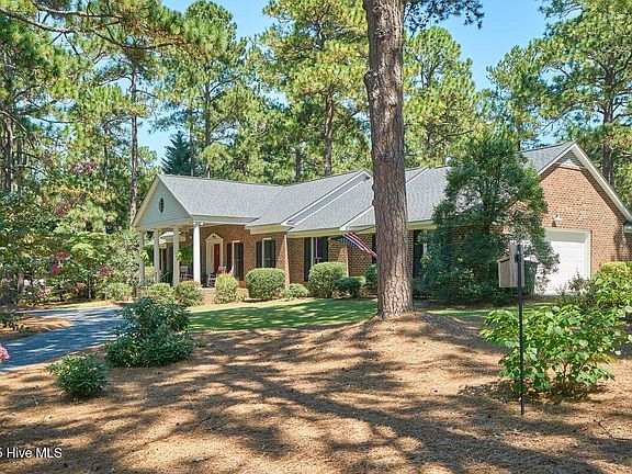 This lovely 2500+ square feet home offers a transferable Pinehurst Country Club membership and serene curb appeal nestled high on a picturesque ¾ acre corner lot with a welcoming gracious front porch with rocking chairs and a front circular gravel drive surrounded with mature Dogwood and Pine trees.