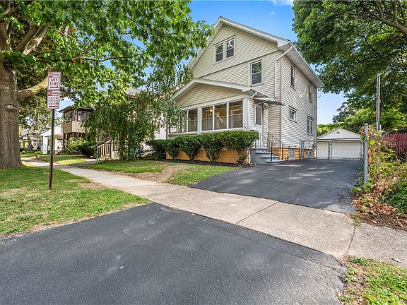 Welcome to 20 Salisbury Street, a beautifully maintained 1920s Four Square Colonial in the heart of Rochester’s popular Homestead Heights Neighborhood. This timeless home showcases the perfect balance of old-world charm and thoughtful modern upgrades, making it a rare find in one of the city’s most walkable and welcoming communities. From the moment you step onto the enclosed front porch, you’ll feel the warmth and character that define this home. Inside, you'll find gleaming refinished hardwood floors, spacious living and dining areas with original architectural details, and a comfortable flow that feels both classic and functional. With 3 generously sized bedrooms and 1.5 baths, the home offers flexibility and space for today’s lifestyle. The finished 3rd floor provides additional square footage not included in the official 1,302 square feet—ideal for a home office, playroom, guest room, or creative studio. Modern updates have been carefully integrated, including a newer roof, updated windows throughout, and glass block windows in the basement, offering both energy efficiency and peace of mind. The home's mechanicals have been updated as well, and you'll enjoy the comfort of central AC, a rare bonus in homes of this era. As an added luxury, a hot tub is included—perfect for relaxing evenings at home. Outside, the detached two-car garage offers convenient off-street parking and additional storage. The location is truly unbeatable—walk to the corner convenience store, bike to the Rochester Public Market, and enjoy being just minutes from downtown, restaurants, parks, and more. This move-in-ready home is one you won’t want to miss. Delayed negotiations are set for Tuesday, September 9, 2026, at 2:00 PM—schedule a showing today and discover everything 20 Salisbury Street has to offer!