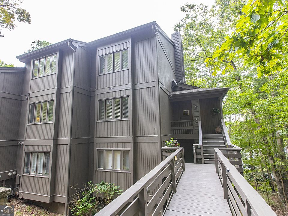 Welcome to your mountain retreat in the heart of Big Canoe! This beautifully updated 3-bedroom, 2-bath condo offers the perfect blend of comfort, style, and versatility. Fully updated interior, the home has also been thoughtfully enhanced with a new HVAC system and durable Luxury Vinyl Plank (LVP) flooring. The home features plenty of closet space, open concept Living Room with a stone fireplace and built-in bookcases, a large kitchen with solid surface counters, pantry and dining space. The Primary Bedroom features an on suite bathroom, three closets, a sitting room and mounted tv that can be swiveled towards the bed or towards the sitting room space. Upstairs are two guest bedrooms with a shared bath are on the upper level. Step out onto the screened-in balcony overlooking serene Sconti Lake-ideal for sipping your morning coffee or unwinding with evening tea. The removable screening panels make seasonal cleaning and open-air enjoyment a breeze. Offered fully furnished and turnkey, this condo includes a locked Owner's Closet and has a strong rental history, especially popular during Big Canoe's vibrant wedding season. Whether you're seeking a smart investment, a peaceful vacation home, or a full-time residence, this property checks every box. For added peace of mind, fire escape ladders have been installed in the Condo's main floor primary bedroom and upper floor bedroom, and fire extinguishers are placed in convenient locations throughout the unit-ensuring safety is never compromised. Enjoy access to both Sconti and Disharoon Lakes with beach, sliding rock, kayaking, and swimming. Access to some amenities provided at discounted rates for owners. The community also features a saltwater swimming pool, championship golf course, brand new clubhouse, fitness center, tennis, pickle ball, bocce ball, scenic hiking trails, and a variety of social clubs and events to connect with neighbors and nature alike. Don't miss this opportunity to own a slice of paradise in one of North Georgia's most sought-after gated communities!