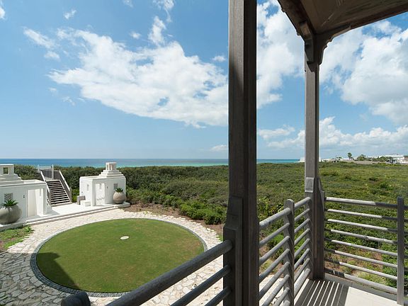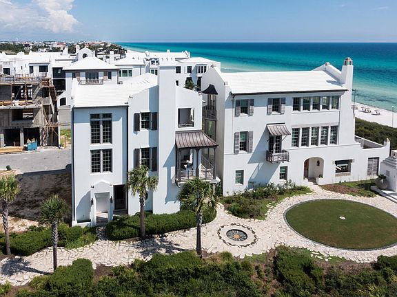 20 Sea Venture Alley is an exquisite Alys Beach residence, situated in a most coveted location just one tier from the Gulf front. Lending unobstructed gulf views from the second and third living areas, the home boasts a rare and impressive westerly vista over undeveloped land. A custom designed gem of all masonry concrete construction, certified FORTIFIED for Safer Living, encompassed in white walls notable to Alys Beach design, precise attention to detail was given by Nashville, Tennessee architect Glen Oxford and interior designer Rozanne Jackson. Previously featured in Milieu magazine.Designer furnishings with custom linen draperies, whitewashed hardwood flooring and Covelano silver marble top counters and vanities throughout, presenting a style of coastal elegance. A private poolwith water feature is enclosed within the walls of the rear gated courtyard, offering a sanctuary of quiet retreat. A unique opportunity, 20 Sea Venture is the only second tier home currently available on market within Alys Beach. The first level houses a guest bedroom, with fireplace and full bath, as well as the laundry room and a half bath. Doors from the first level open to the courtyard pool on the east as well as to the park and beach access on the west. Second level offers main living spaces and kitchen and dining with panoramic gulf views. The kitchen is well appointed as a true chef's kitchen with top-of-the-line appliances. The second floor balcony looks west over the gulf, stunning forever views, and offers a lovely year-round gathering, nicely accented with an outdoor gas fireplace. An additional guest suite/den, with full bath, is also on the main, second level. Mounting to the third floor the master suite and additional guest suite take their place at this nice elevation, as well as a gulf-front sitting area and covered deck, also facing west. Home has strong established rental income of +$290K for 2015! See attached list of Features and Finishes and Rental Income Pro Forma. A residence that well defines the coastal luxury architecture and design notable of our area and sought by discriminating buyers. SEE VIDEO.
