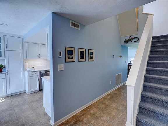 Fabulous townhouse with spectacular, unobstructed western water and sunset views! Updates in this beautifully renovated two-story home include eat-in kitchen w/white cabinetry, stainless appliances and quartz countertops, three remodeled baths - master bath with gorgeous custom shower, new flooring throughout, new heat and a/c, new hot water heater, new electrical panel and much more. Easy access from garage directly into beautifully landscaped private front patio. Rear patio looks out on to the Bay. 1/2 of 1% of purchase price paid by buyer to NFHOA at closing.