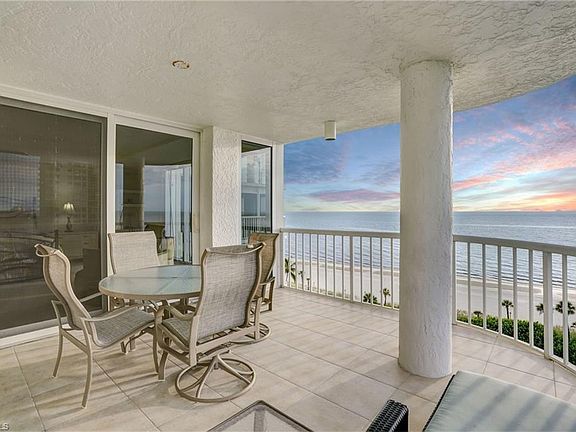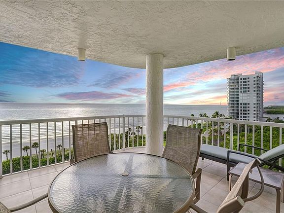 Welcome to a rarely available and beautifully appointed 8th floor residence in the popular Beach House at Naples Cay. Located right on the Gulf of Mexico, Beach House 803 is on the northwest corner, and its floor to ceiling glass walls offer dramatic views of the beautiful sunsets over the Gulf, as well as long-range views of the mangroves of Clam Bay. This 2-bedroom, 3-bathroom coastal retreat offers the ultimate in beachfront living, in the gated and private Naples Cay community tucked between the high-end Pelican Bay and Park Shore neighborhoods. Step into a light-filled open floor plan with walls of glass that frame endless gulf views and captivating sunsets. The expansive living and dining areas flow seamlessly onto a private balcony perfect for entertaining or simply unwinding with the sound of the waves. The gourmet kitchen features sleek cabinetry, granite countertops, and a breakfast bar. The spacious primary suite includes a walk-in closet, luxurious en-suite bath with dual vanities, and direct access to the terrace. The guest bedroom offers privacy and comfort with its own balcony and bath. This unit includes two assigned parking spaces, one in a private garage and the other in a covered parking deck, both connected to the Beach House building. Located directly on the sand, Beach House at Naples Cay is a boutique high-rise with only 33 residences, offering resort-style amenities including a pool, private beach access, tennis courts, fitness center with sauna and steam room, walking park, on-site management, and garage parking. Just minutes from Venetian Village and Waterside Shops, this residence combines tranquility with access to world-class dining, shopping, and entertainment. If you're looking for a seasonal, or longer, getaway, Unit 803 is your front-row seat to the best of Gulf-front luxury living.