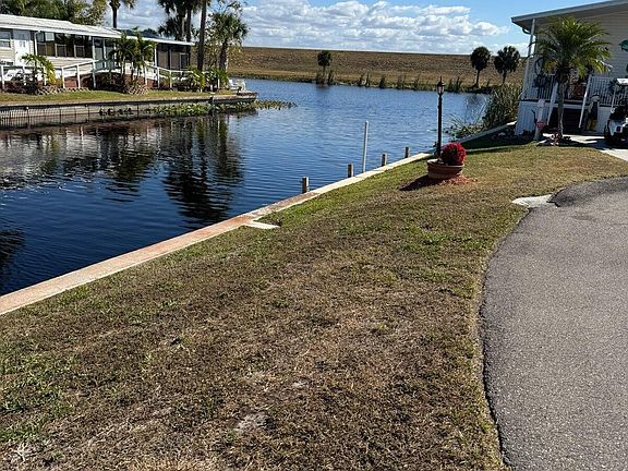 A least one person on the deed must be 55 or older.Immaculate park model. Brand new garage 55 X 20 with an awesome man cave in the rear that is heated and cooled with a brand new mini split.Complete new air conditioning sytem installed late december 2025.Roof was painted last year. All plumbing replaced last year. The canal in back takes you to the rim canal witch takes you to the lift that puts you, the boat and your gear in Lake Ocheechobee. Active retirees will welcome you to the small park (60 units) with open arms and lots of gatherings at the club house.There will be a one time special assessment of $460 due June 1st 2026 for sealing the roads, negotiable.