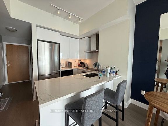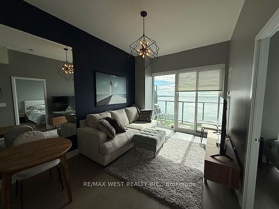 Welcome to Eau Du Soleil Condos at Lake Shore & Park Lawn! This elegant 1+Den suite sits high on the 43rd floor with unobstructed southeast views of the lake and Toronto skyline. The unit features premium upgrades throughout, including quartz stone countertops, stainless steel appliances, modern cabinetry, and a spa-inspired full marble bathroom. The versatile den offers the ideal space for a home office, dining nook, or guest area. Enjoy resort-style living with world-class building amenities such as a rooftop terrace, indoor pool, gym, yoga studio, theatre room, party room, games room, and 24-hour concierge. Perfectly located steps from the waterfront, Humber Bay Park, restaurants, cafes, shopping, and transit with quick access to the Gardiner Expressway. Parking and locker included!