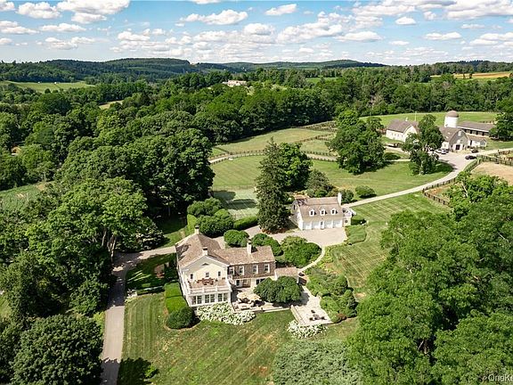 Set on 53+ Bucolic acres in the heart of the Hudson Valley, Smithfield Farm is an exquisite estate, offering breathtaking, sweeping western views of the Smithfield Valley and the Catskill mountains. The centerpiece of the estate is a meticulously preserved 1790 Colonial main house with a stately brick exterior and a grand center hall. Inside, you will find four woodburning fireplaces, central air conditioning, and beautifully restored original details. The grand entertaining rooms include a 27-foot-long living room with an adjacent sunroom boasting floor to ceiling windows facing south, east, and west, as well as a formal dining room and billiards room both with original 18th century wood paneling. The ground floor also features a windowed kitchen with a separate windowed breakfast room, a home office and a mudroom. The private quarters upstairs are equally impressive. The primary suite, a corner room, offers a private terrace and an en-suite windowed bathroom with two sinks and a large shower. There is a guest suite with two bedrooms and an en-suite bathroom as well as four additional bedrooms that share a hall bathroom. This wing also has a powder room and laundry room. The home has a generator. A unique highlight of the property is the magnificent Camperdown Elm, located on the expansive terrace of the main house. This rare tree, dating back to the 1940s, provides a beautiful, shaded canopy, perfect for relaxing with cocktails and dinner while enjoying stunning sunsets over the valley. For recreation the estate offers a 48' x 17' heated gunite pool with a hot tub and large terrace, and tennis court discreetly concealed by mature plantings. Additional accommodations include a four-car garage with a two-bedroom, two-bathroom guest apartment above, featuring a living room with a 13'9" ceiling, a wood-burning fireplace, central air-conditioning and a terrace overlooking the paddocks. There is also a caretaker's cottage located at the top of the property, which has three bedrooms. Designed for Polo, Smithfield Farm is ideal for all equestrian or athletic pursuits. The main barn includes 28 stalls, with additional facilities, including two summer barns, jumping and exercise rings, multiple paddocks and turn out areas, and an "infinity" polo field with unmatched views. Smithfield Farm is a combination of historical charm, luxurious amenities, and stunning natural beauty. Co-Exclusive Additional Information: Amenities:Guest Quarters,Soaking Tub,Storage,Tennis,HeatingFuel:Oil Above Ground,ParkingFeatures:4+ Car Detached.