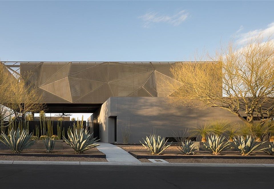 Pristine symmetrical landscaping paves your entrance into this open, airy, stunning house. You are greeted by a grand foyer, beautiful stone floors, & an immense chandelier cascading from the high ceilings. An abundance of natural light surrounds you as you make your way through. A sensational chef’s kitchen with top-of-line appliances, custom countertops, an island & connected great room with gorgeous one-of-a-kind built-in makes entertaining in this designer masterpiece a dream! The “nature meets modern” concept is carried throughout the home, & the bedrooms are no exception, from the textured stoned walls & custom closets to the unique built-in features. A spectacular rooftop sundeck with a fire pit & custom bar provides breathtaking views. A sparkling infinity pool & pockets of courtyards are peppered throughout. Light flows amidst the seamless design. A collage of peaceful spaces. This oasis in the desert truly is a luxurious Zen masterpiece!