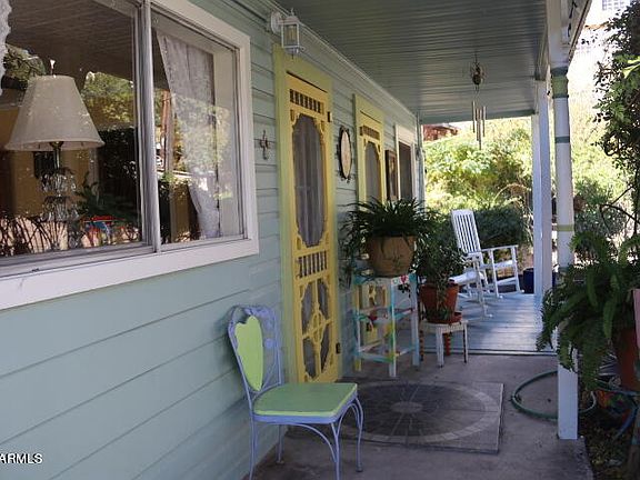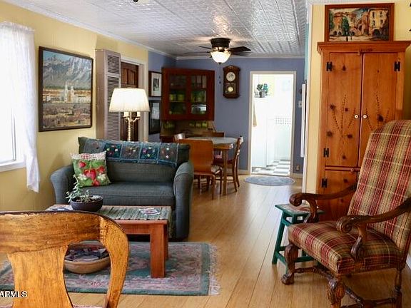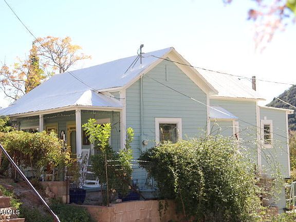 This is a wonderful house in the Heart of Bisbee - with NO steps. There are numerous upgrades - wiring, double-pane windows, custom kitchen with pull-out drawers and black and white tile floor. Bamboo floors throughout, with tile bathroom floors and tin tile ceiling. Ceiling fans in every room. A mini-split and wall heater keep the house comfortable. Custom blinds and historic screen doors will remain. The yard is completely fenced. The large basement has two rooms with block walls and cement floor and lots of storage area. There is plenty of parking space and beautiful views from every window.
