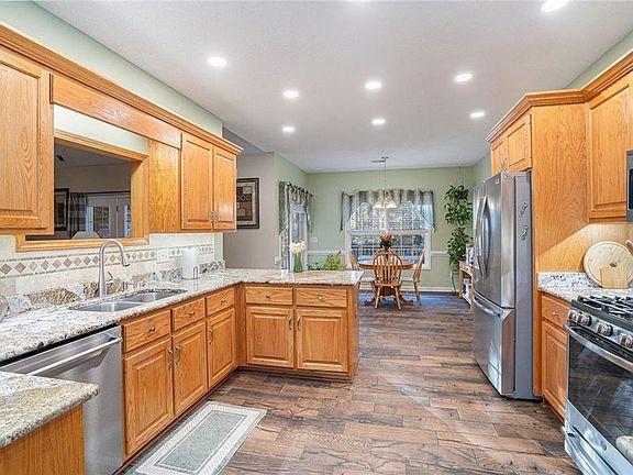 High ceilingsAdditional garage and workroomHardwood floorsExpansive deckTranquil koi pondBreakfast nookGenerous counter space